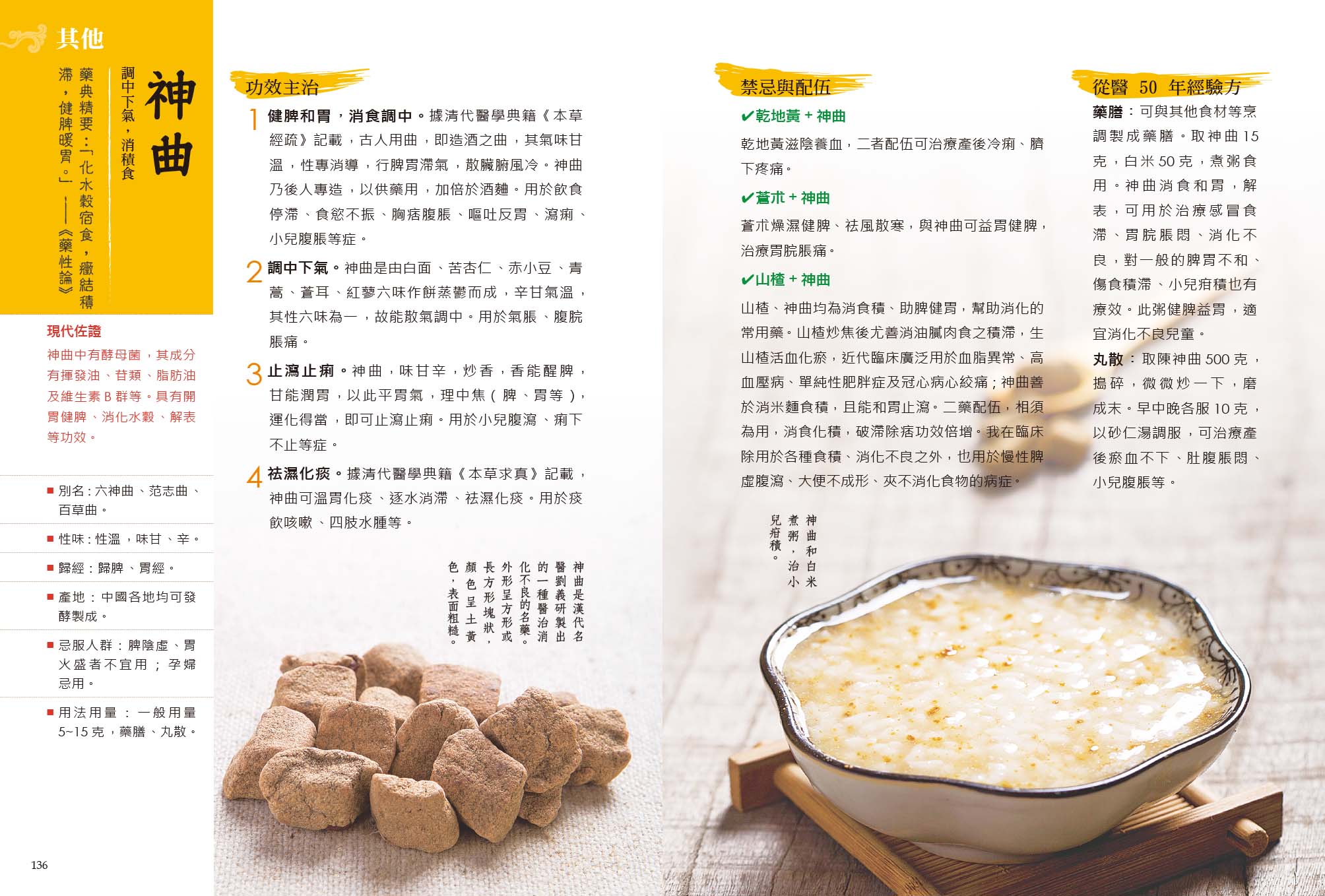 酸棗仁泡茶可安心神;生薑煮粥可宣通肺氣,止肺寒咳嗽;吃幾顆桃仁、杏仁,可潤腸通便,除口氣……常用中藥的功效一目了然,v、x的宜忌列表,好懂,好記。讓你準確、快速找到對症藥方。